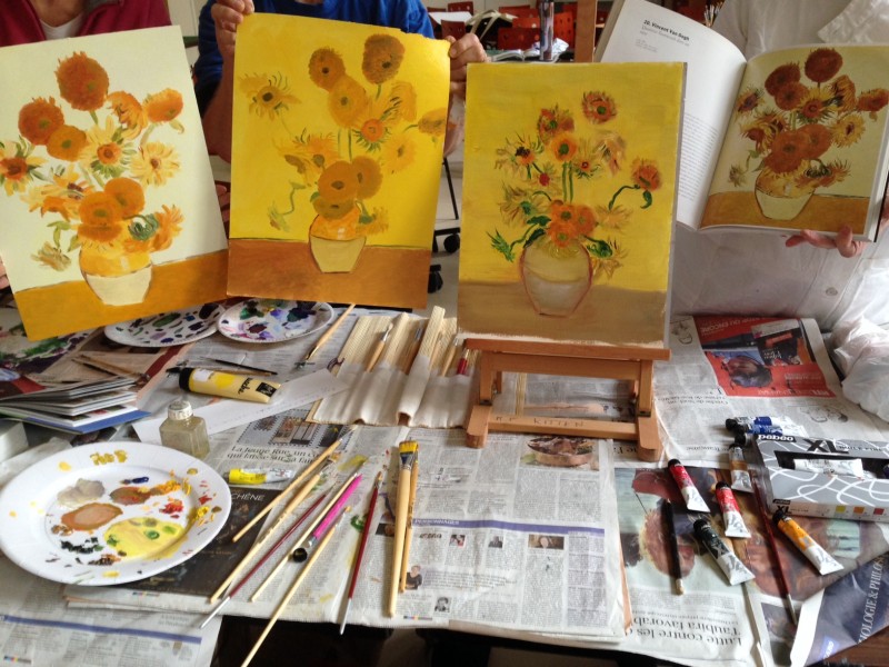 Techniques abordées : dessin, exercices à la gouache, oeuvres à la peinture à l'huile ou acrylique... les techniques sont assez libres.